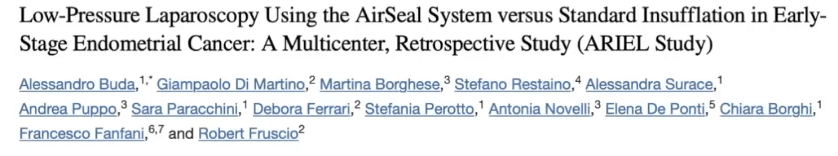2 Buda A, Di Martino G, Borghese M, et al. Low-Pressure Laparoscopy Using the AirSeal® System versus Standard Insufflation in Early-Stage Endometrial Cancer: A Multicenter, Retrospective Study (ARIEL Study). Healthcare (Basel). 2022;10(3):531. Published 2022 Mar 14. doi:10.3390/healthcare10030531