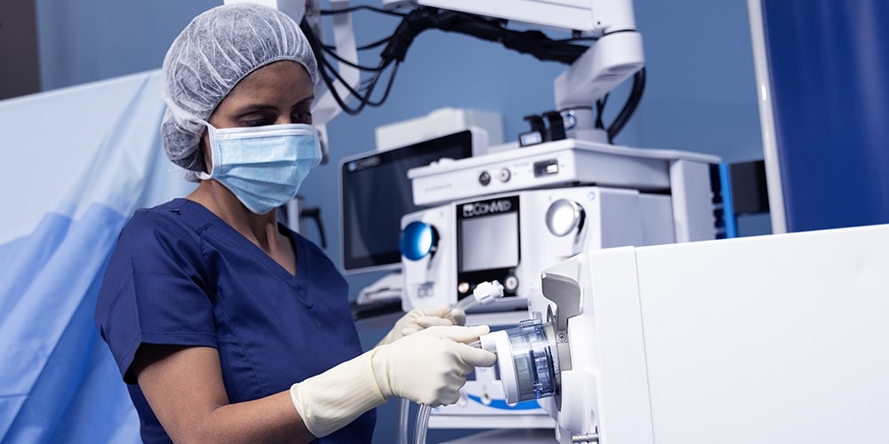 Bei laparoskopischen und Da-Vinci-Urologieeingriffen sorgt AirSeal® für eine hervorragende Visualisierung, indem es eine konstante Rauchabsaugung und ein stabiles Pneumoperitoneum bietet, selbst bei starker Absaugung und großen Trokarlecks. Mit AirSeal® können Chirurgen sicher bei extrem niedrigem intraabdominalen Druck operieren, was nachweislich die Patientenergebnisse verbessert.1-5