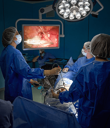 狭い作業領域で視覚化が非常に重要である場合、当社ではすべての eTEP ヘルニア修復に AirSeal を採用しています。操作は 15mmHg の圧力で開始され、その後すぐに 10mmHg 以下に減圧されます。閉鎖時の平均圧力は 5 ~ 7mmHg で、張力のない良好な閉鎖が可能です。